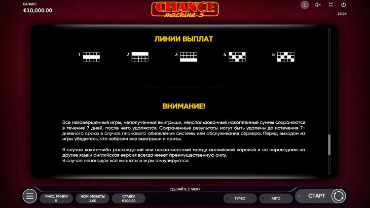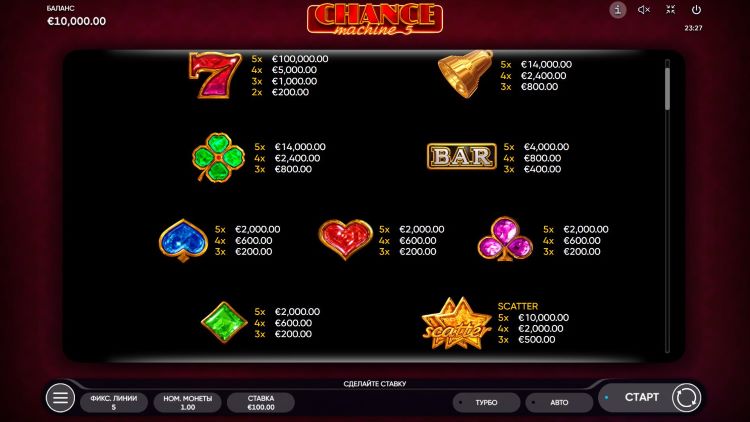 Таблица выплат Chance Machine 5
