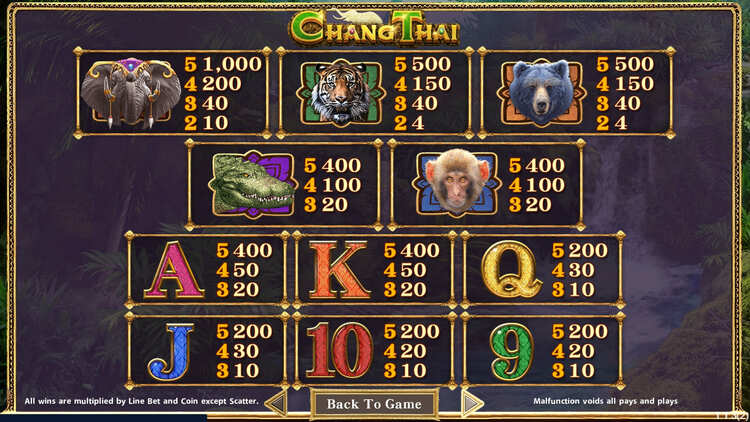 Таблица выплат Chang Thai