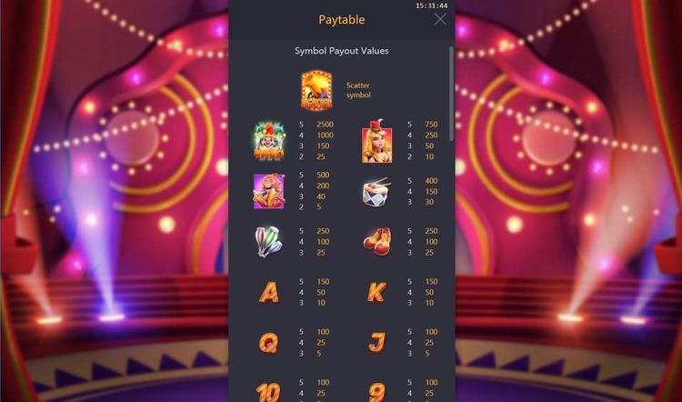 Таблица выплат Circus Delight