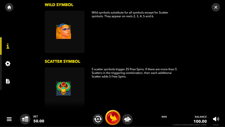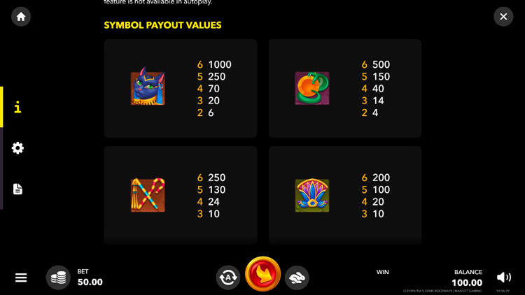 Таблица выплат Cleopatras Gems Rockways