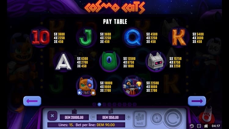 Таблица выплат Cosmo cats