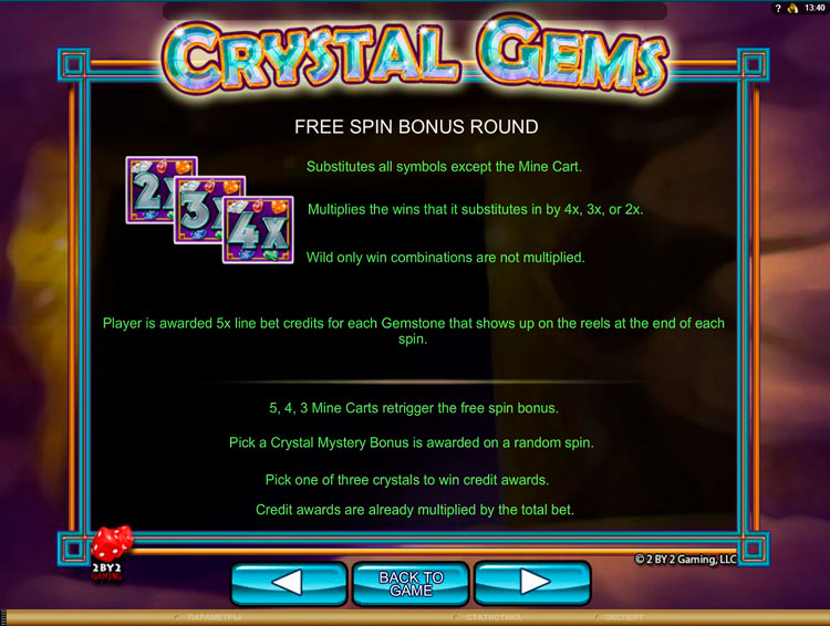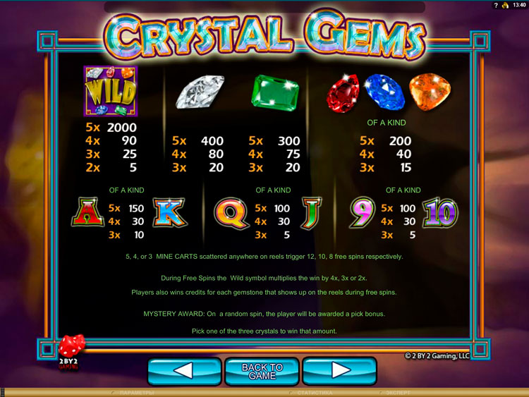 Таблица выплат Crystal Gems