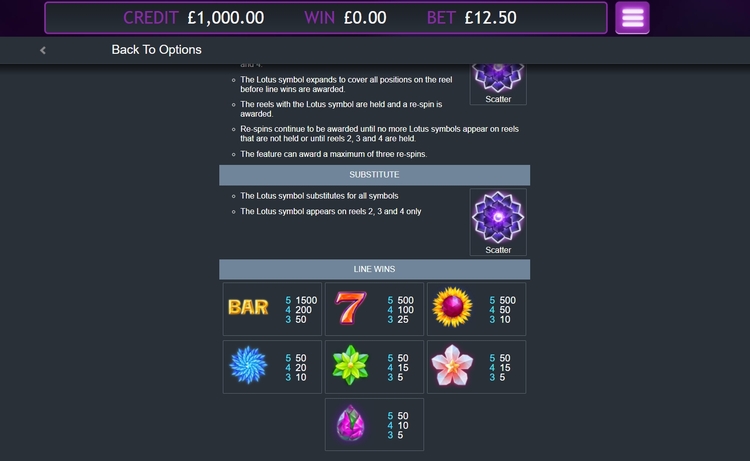 Таблица выплат Crystal Lotus
