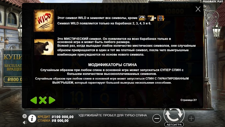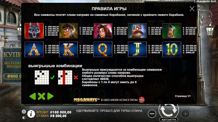 Таблица выплат Curse of the Werewolf Megaways