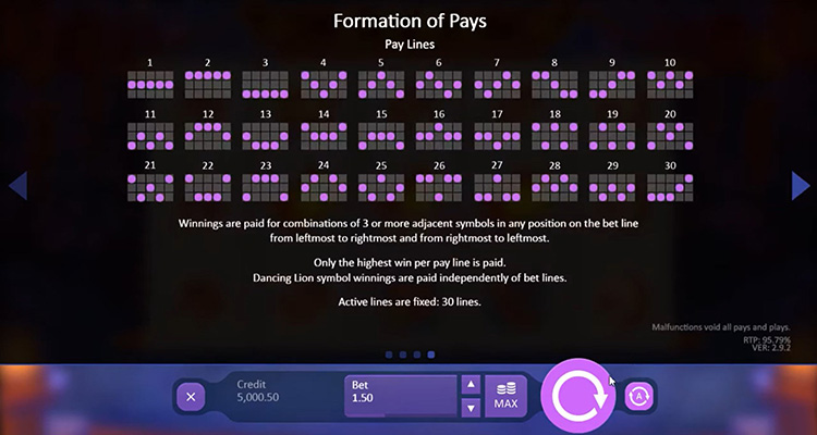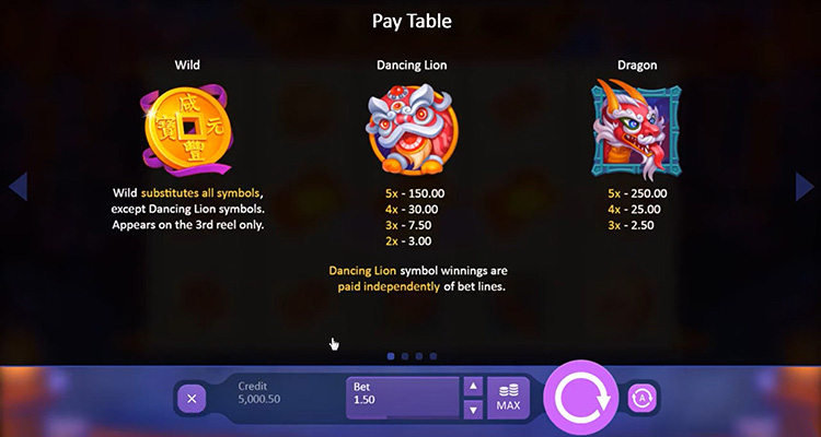 | Танцующий лев | 3 | 7,5 | 30 | 150 |
