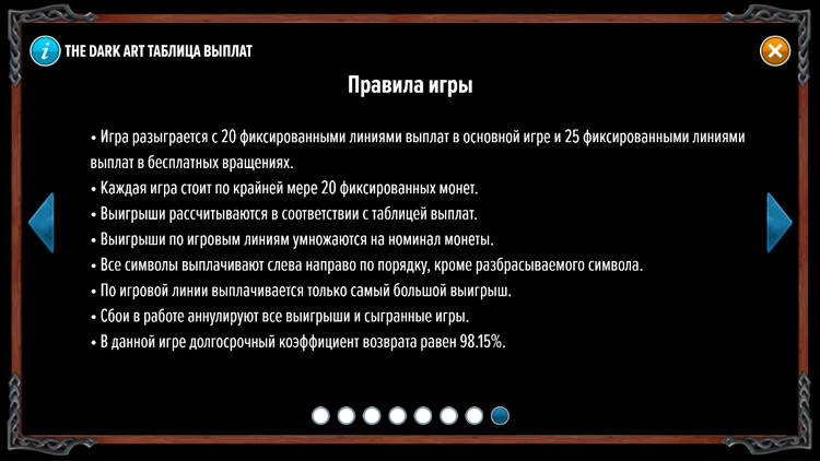 Таблица выплат The Dark Art