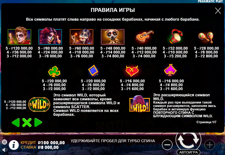 Таблица выплат Day of Dead