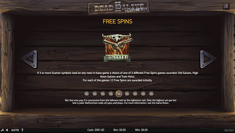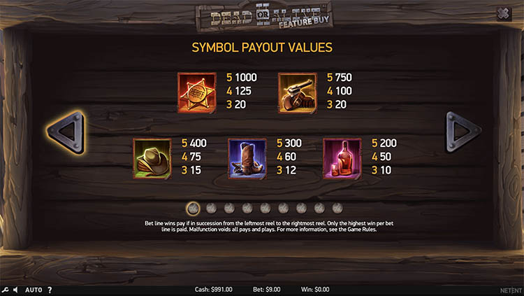 Таблица выплат Dead or Alive 2: Feature Buy