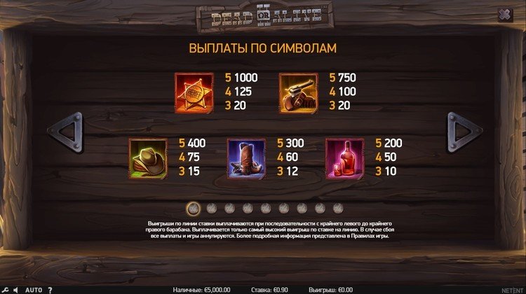 Таблица выплат Dead or Alive 2