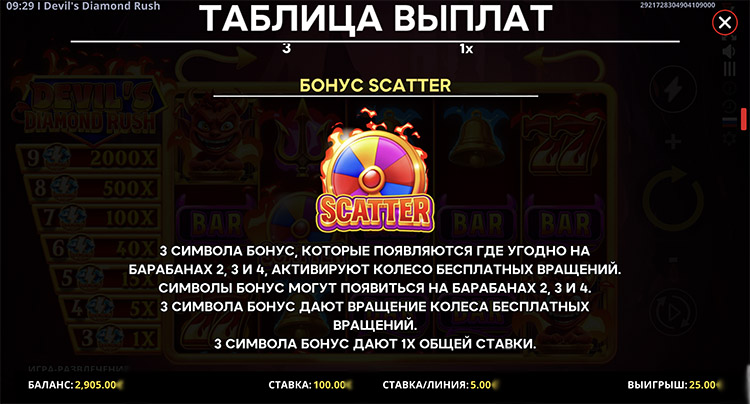 Таблица выплат Devil’s Diamond Rush