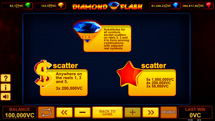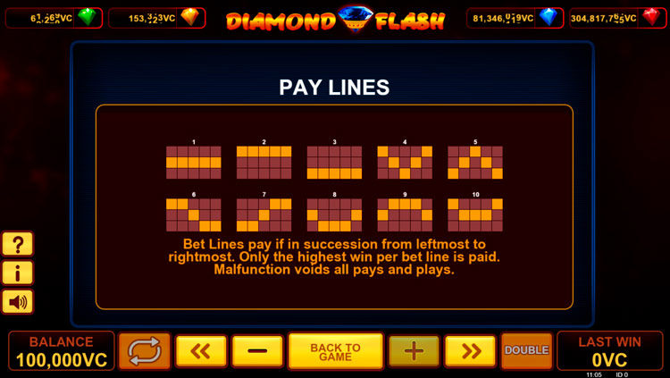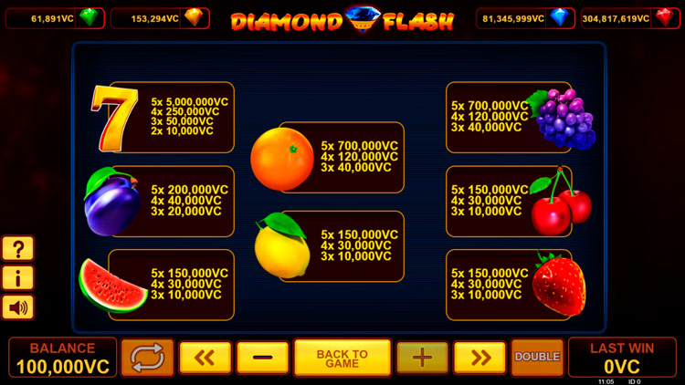 Таблица выплат Diamond Flash