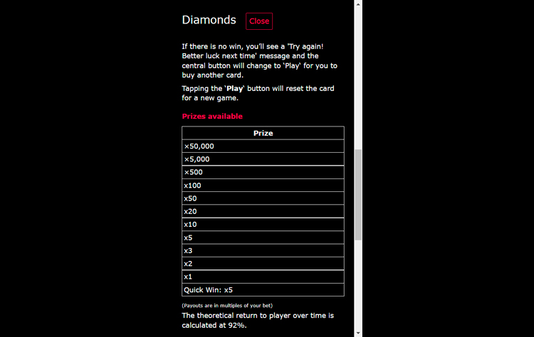 Таблица выплат Diamonds