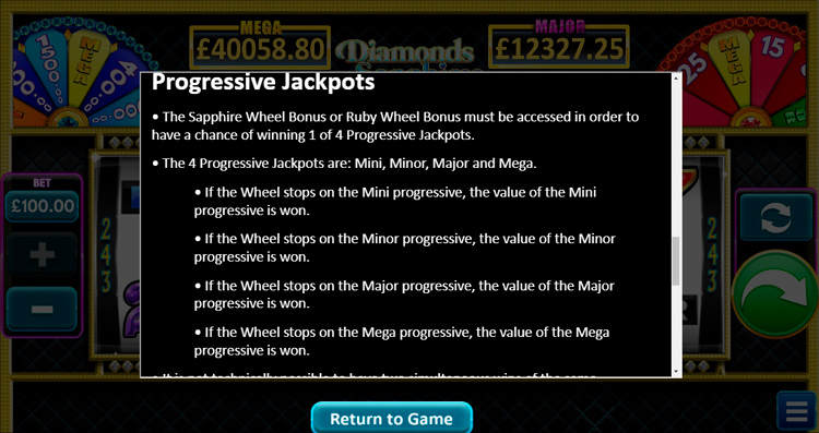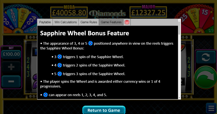 Таблица выплат Diamonds, Sapphires & Rubies