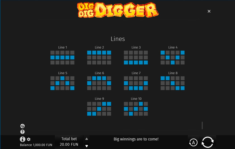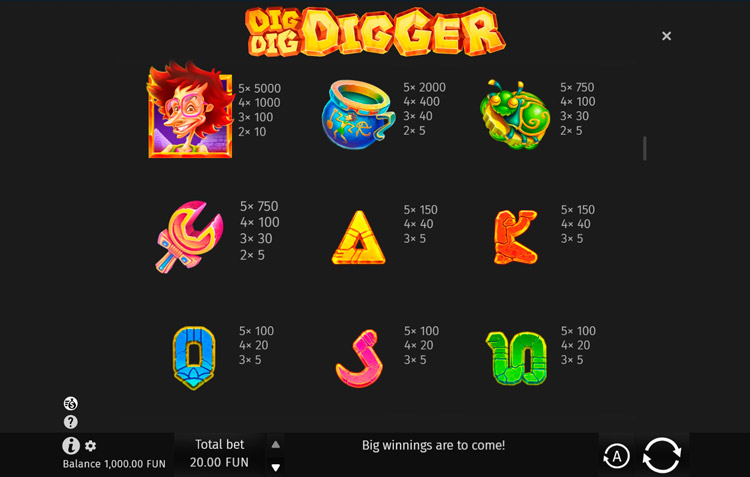 Таблица выплат Dig Dig Digger