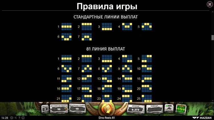 Таблица выплат Dino Reels 81