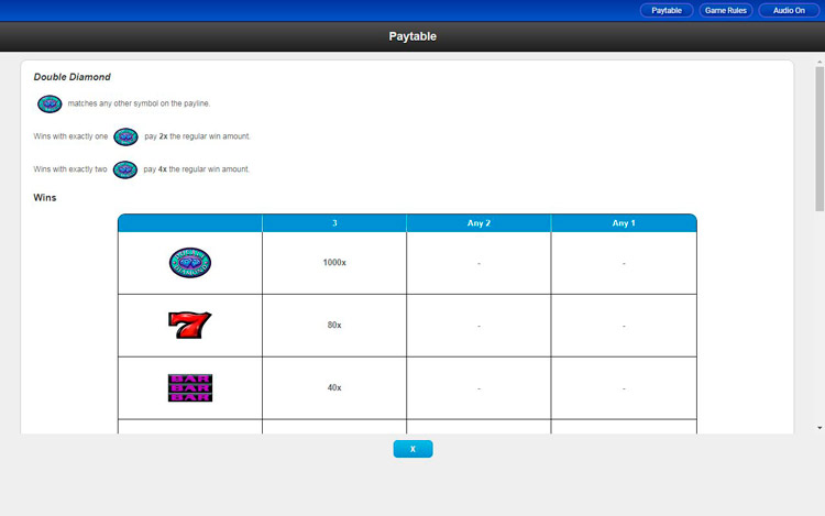 Таблица выплат Double Diamond