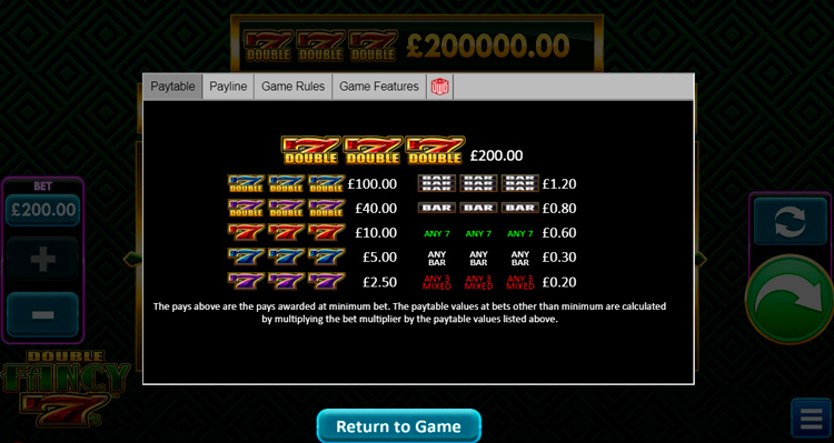 Таблица выплат Double Fancy 7’s