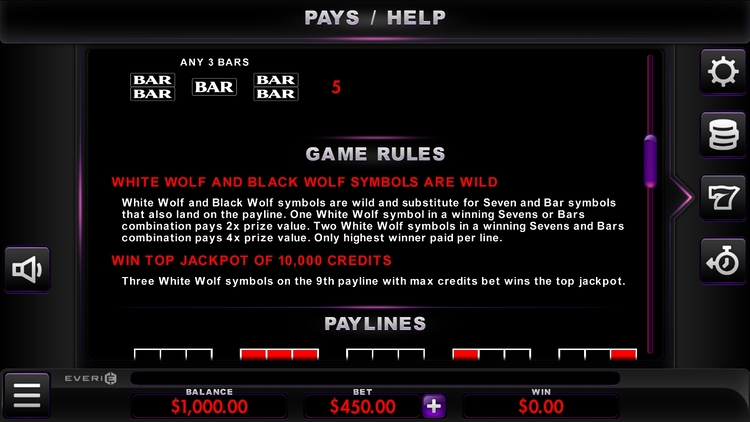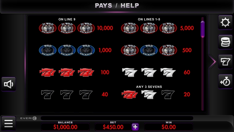 Таблица выплат Double Wolf
