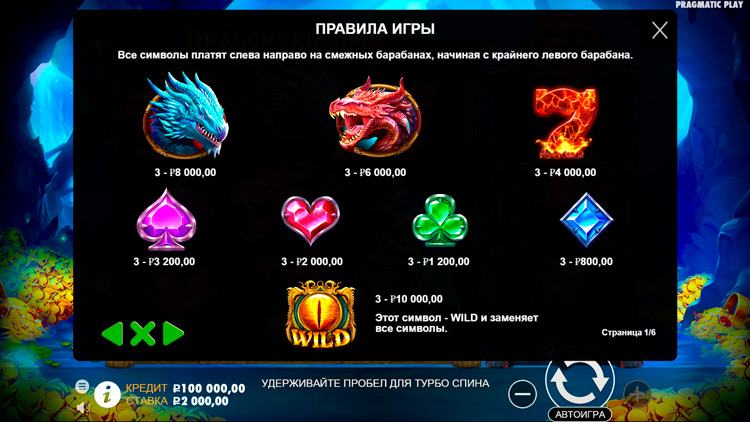 Таблица выплат Dragon Kingdom — Eyes of Fire