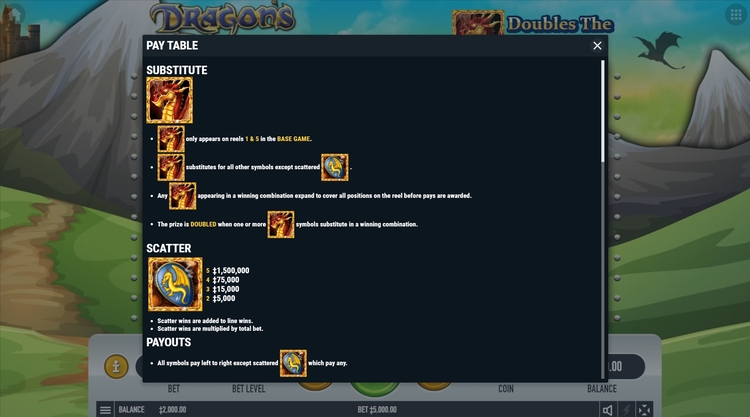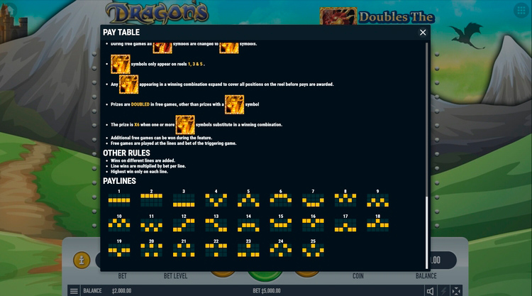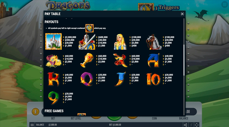 | Дракон (Scatter) | 5 000 | 15 000 | 75 000 | 1 500 000 |