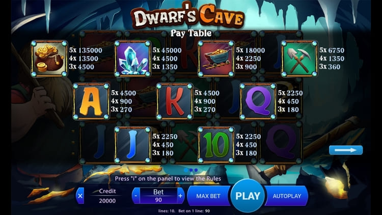 Таблица выплат Dwarf’s Cave
