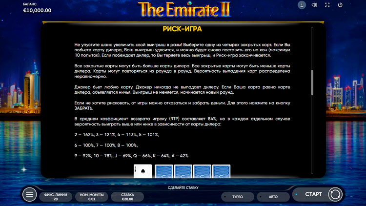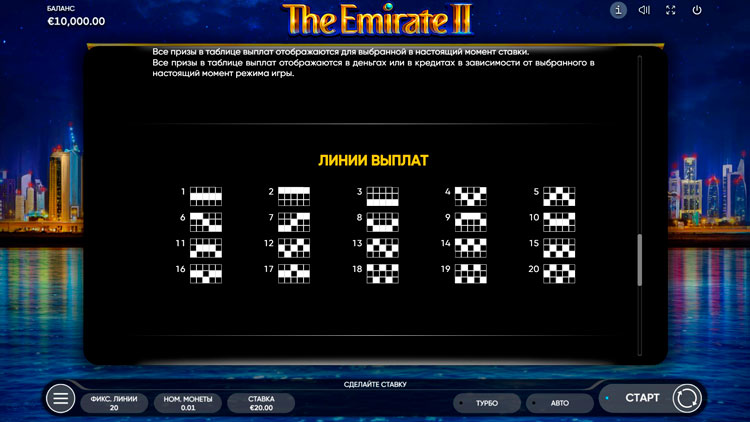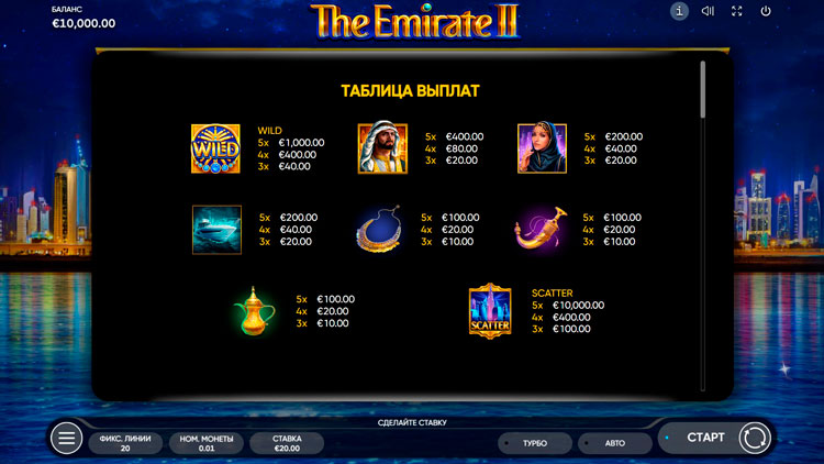 Таблица выплат Emirate II