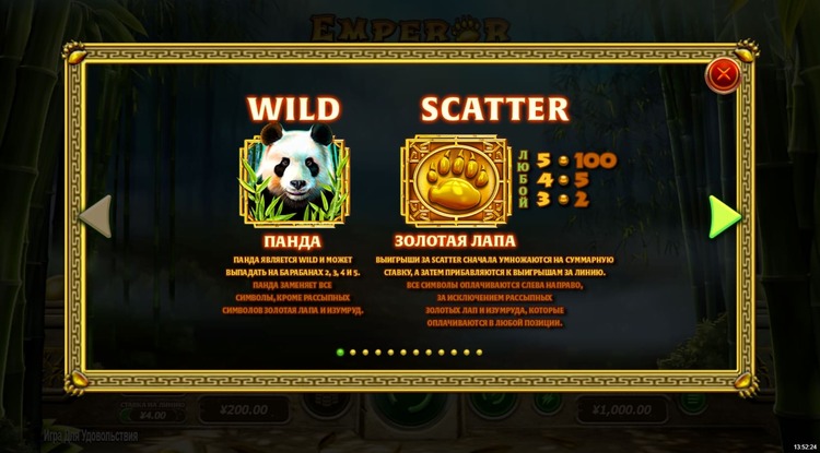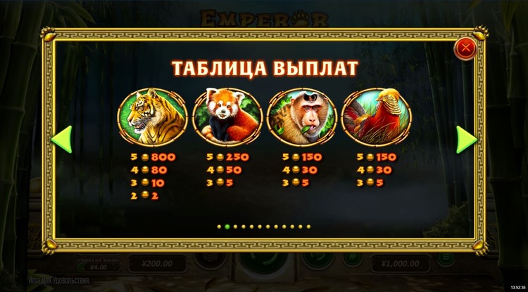 Таблица выплат Emperor Panda