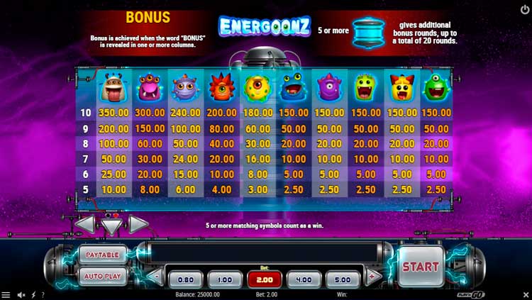Таблица выплат Energoonz
