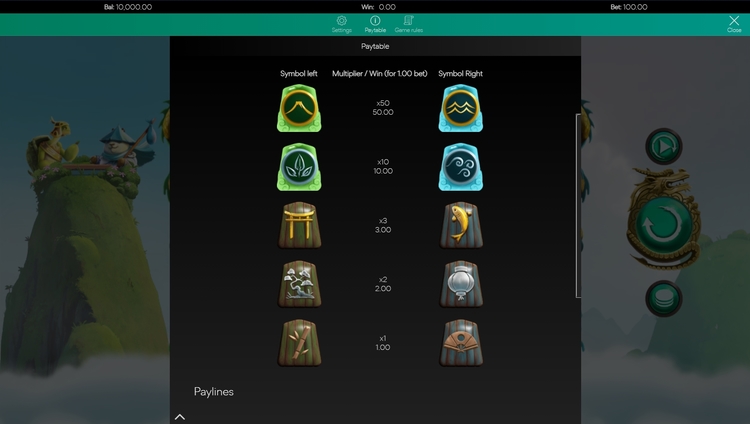 Таблица выплат Eternal Shogi