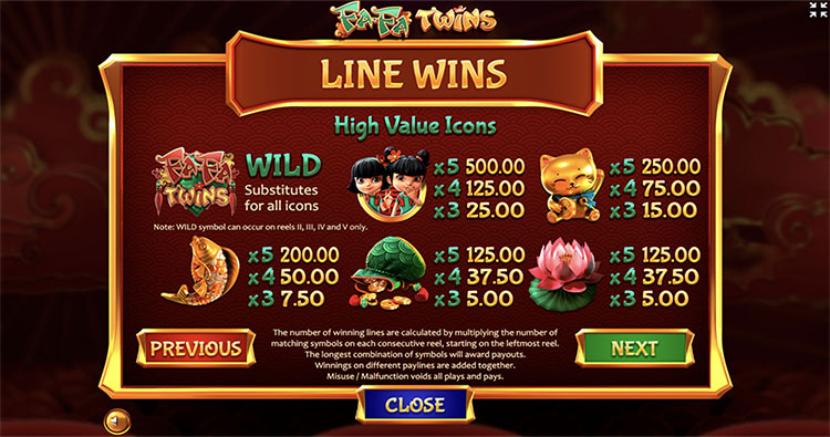 Таблица выплат Fa-Fa Twins