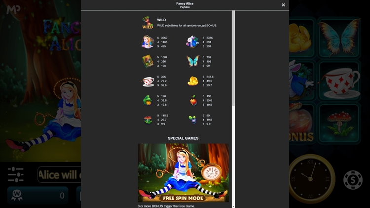 Таблица выплат Fancy Alice