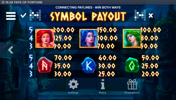 Таблица выплат Fate of Fortune