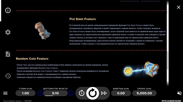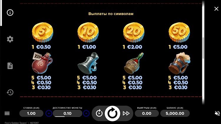 Таблица выплат Finn’s Golden Tavern