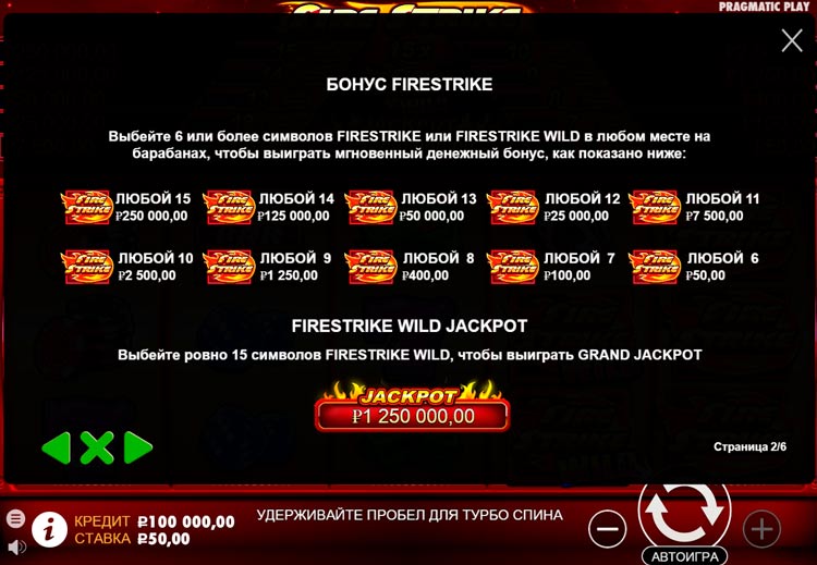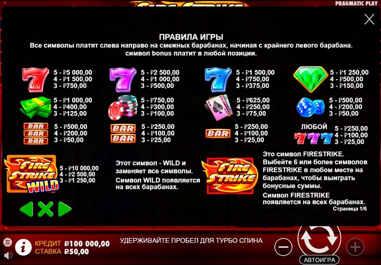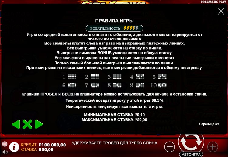 | Символ игры (Wild) | 1 250 | 2 500 | 10 000 |