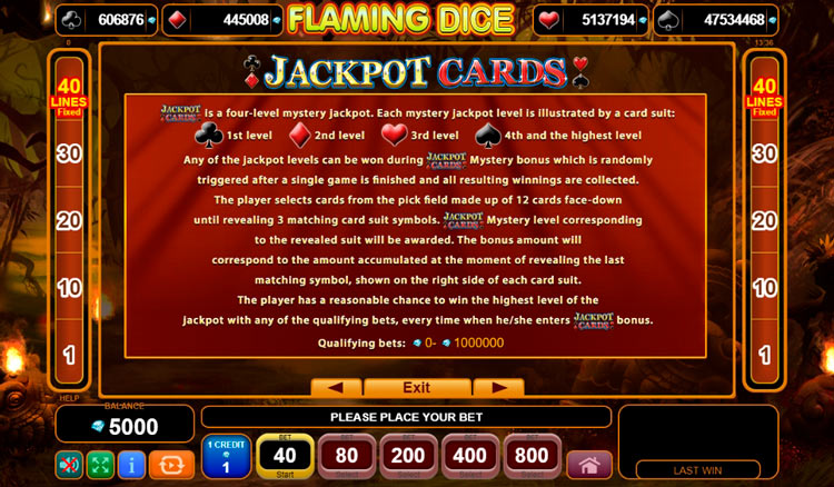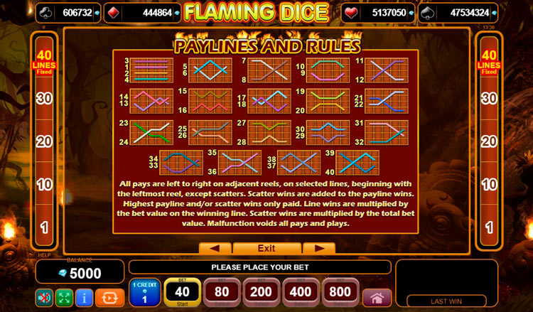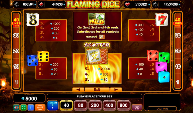 Таблица выплат Flaming Dice