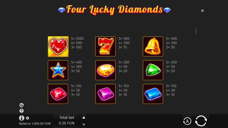 Таблица выплат Four Lucky Diamonds