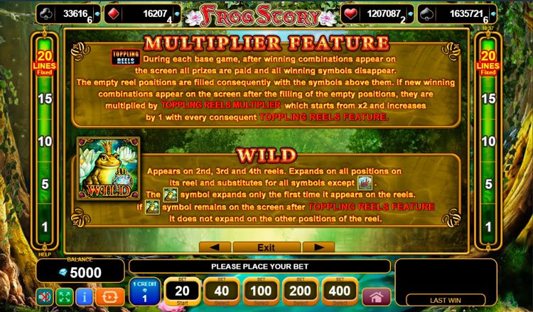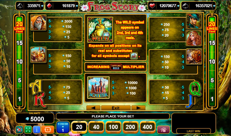 Таблица выплат Frog Story
