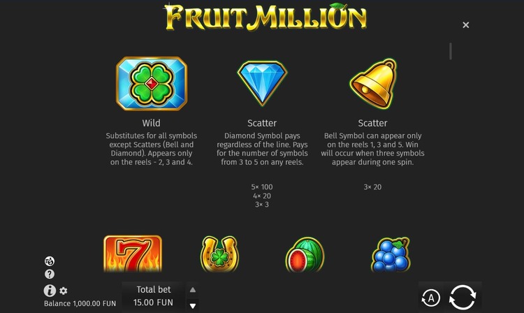 Таблица выплат Fruit Million