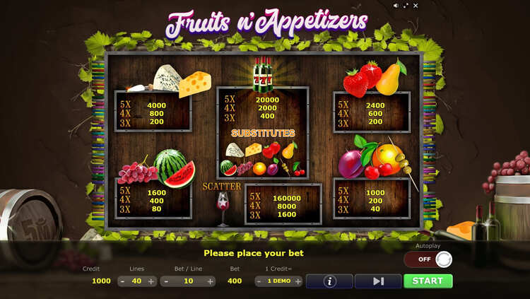 Таблица выплат Fruits n’Appetizers