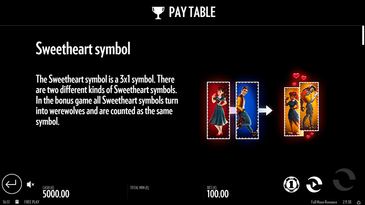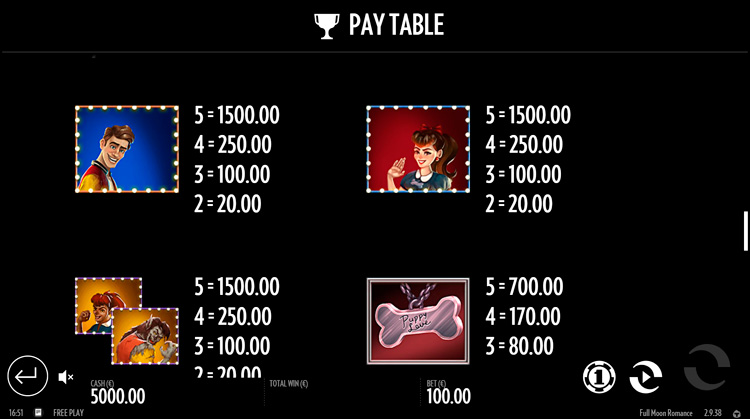 Таблица выплат Full Moon Romance