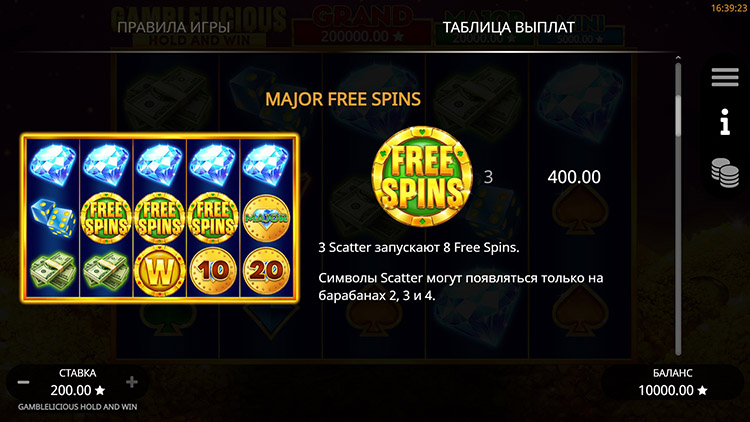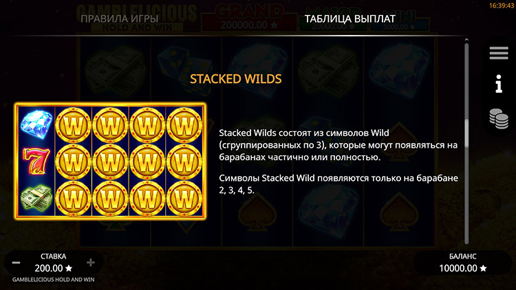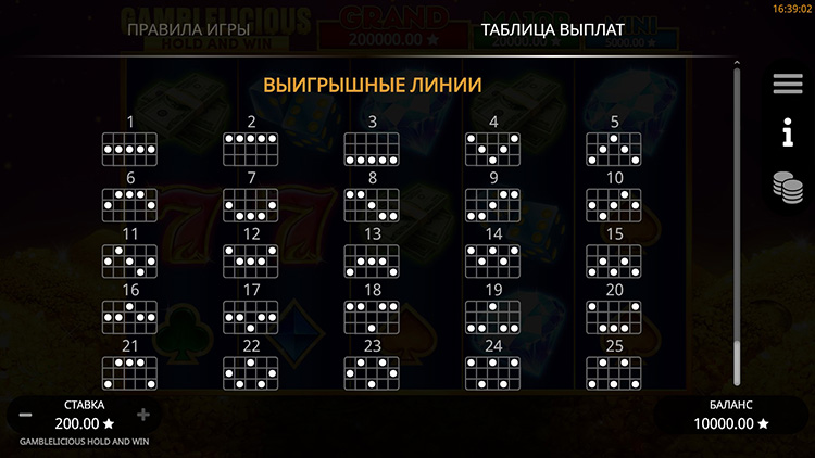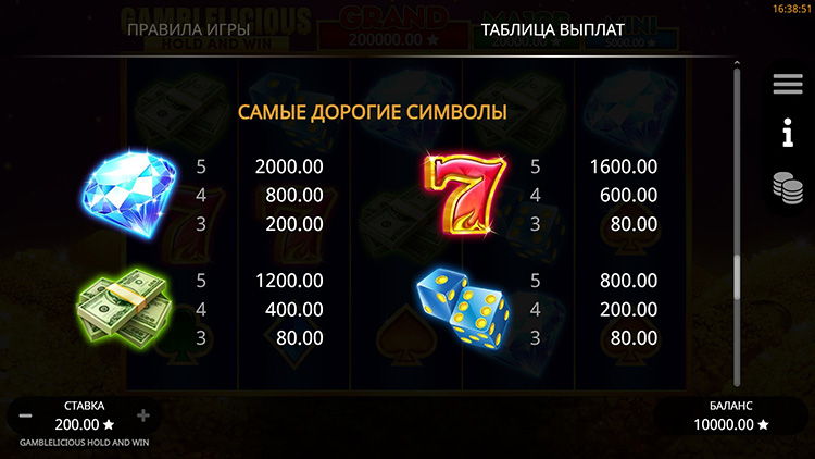 Таблица выплат Gamblelicious Hold and Win