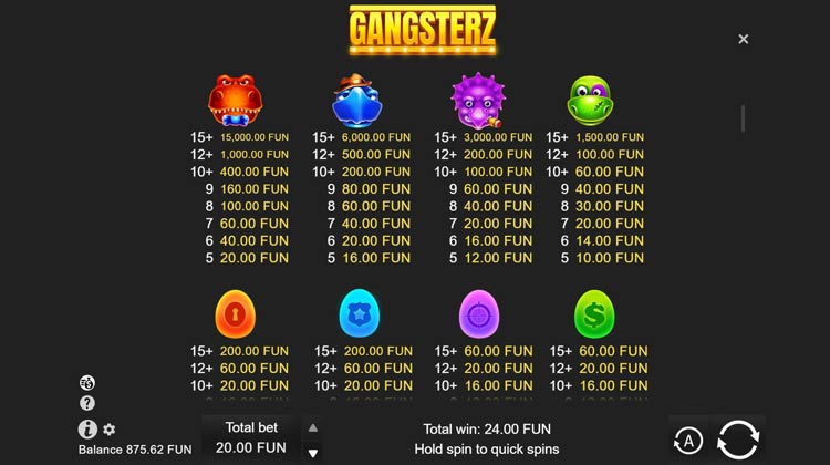 Таблица выплат Gangsterz