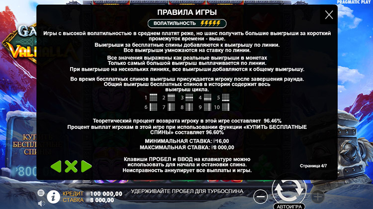 Таблица выплат Gates of Valhalla