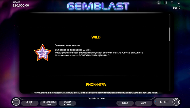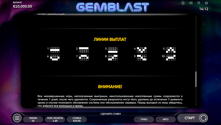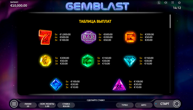Таблица выплат Gem Blast