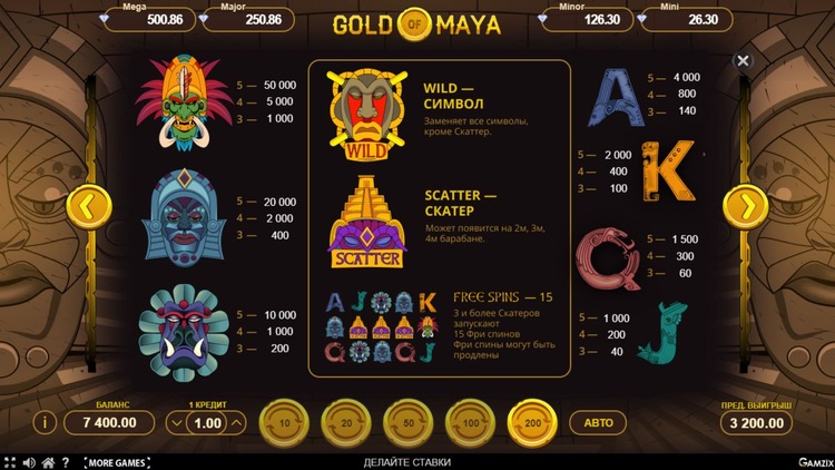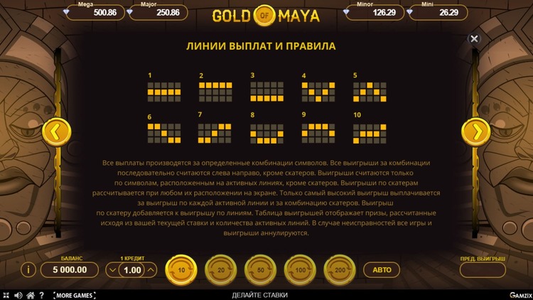 Таблица выплат Gold of Maya