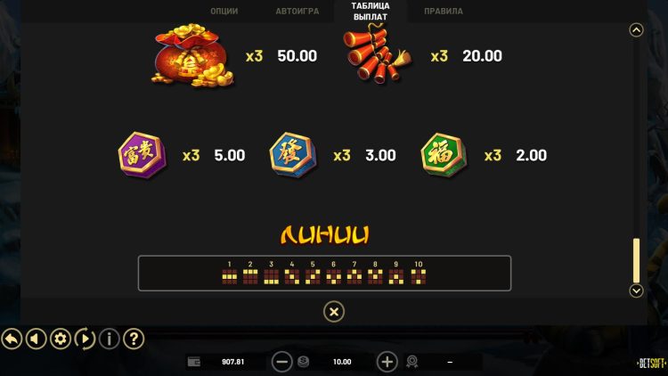 Таблица выплат Gold Tiger Ascent