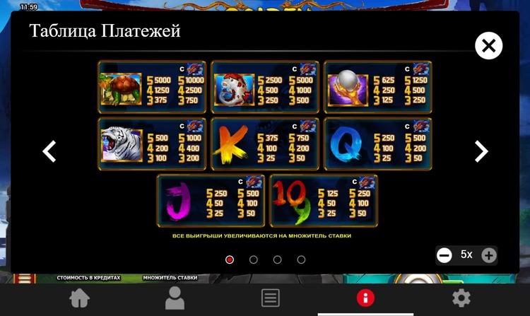| Черепаха | 375/750 | 1 250/2 500 | 5 000/10 000 |