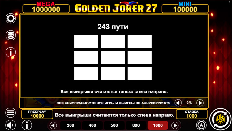 Таблица выплат Golden Joker 27