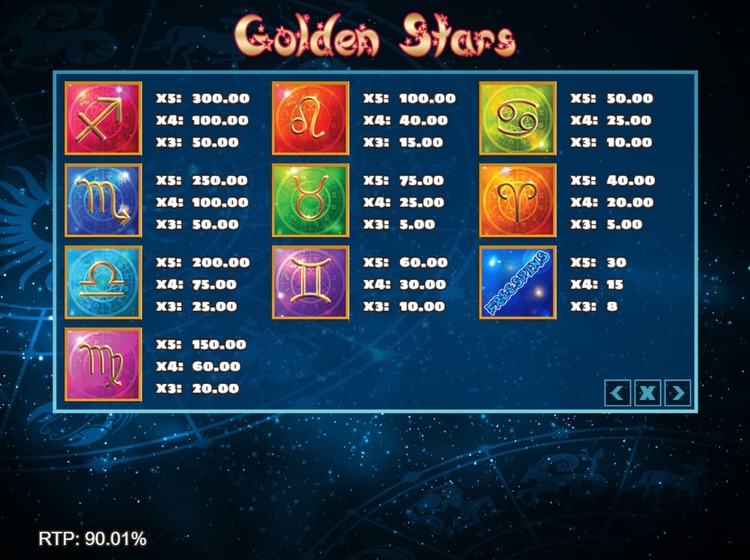 Таблица выплат Golden Stars