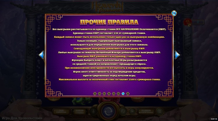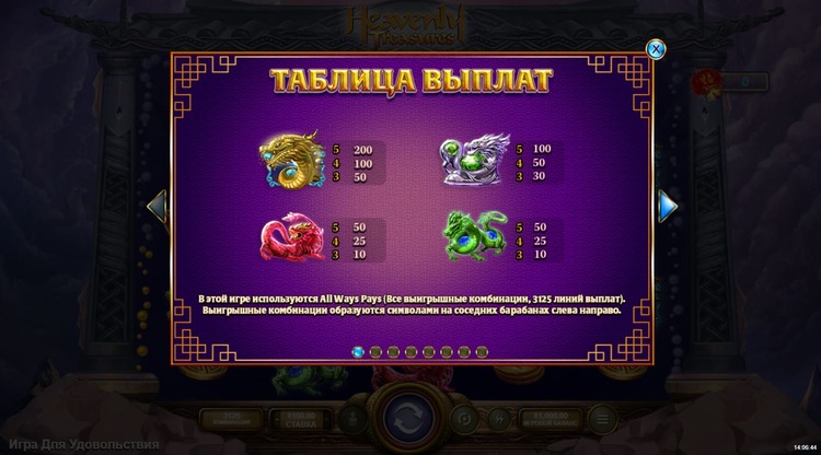 Таблица выплат Heavenly Treasures